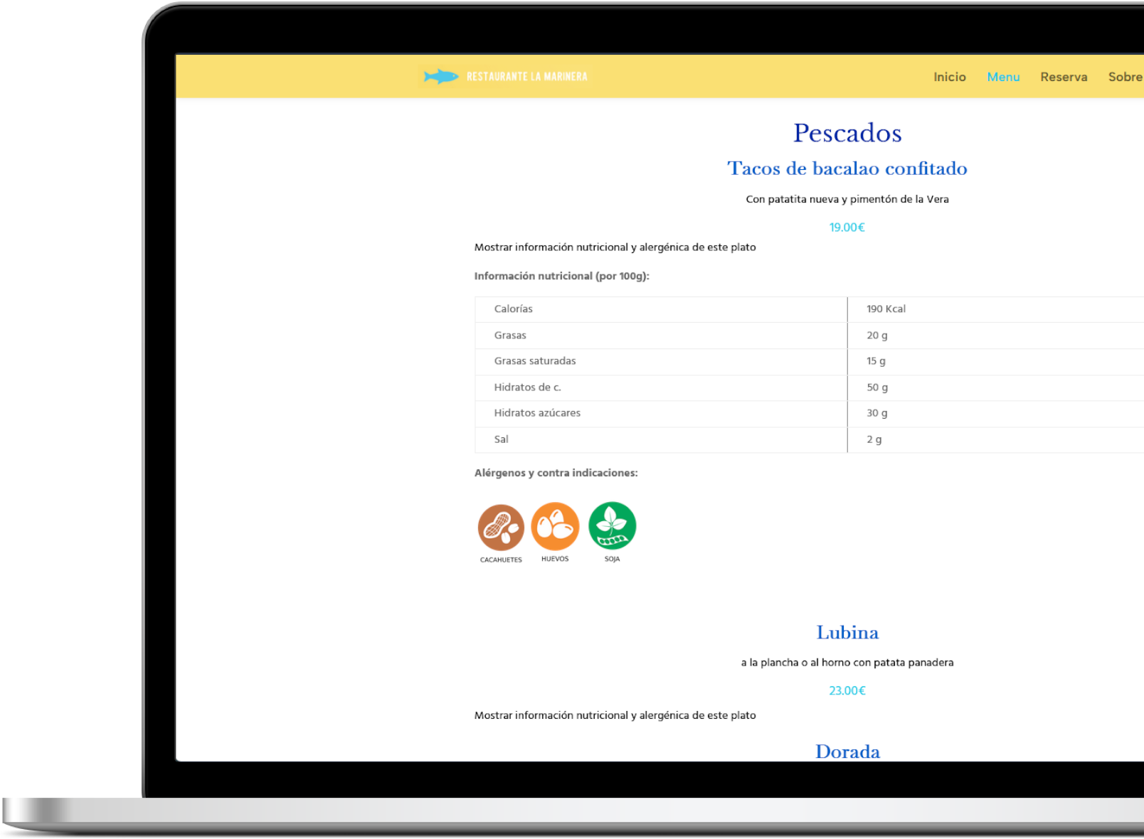 Podemos indicar si un plato es alto en azúcar, si es apto para veganos, o si contiene trazas de frutos secos, y mucho más…