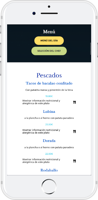 La carta es compatible con la insercción de información nutricional y alergénica para clientes con necesidades alimentarias especiales, como celiaquía, veganismo o diabetes. Lo que necestas para cumplir con la norma 1169/2011.